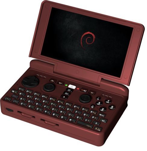 It has a physical keyboard, a bunch of storage and input/output options, dedicated buttons for playing games, and Debian Linux software which allows you to play games or run desktop software including LibreOffice and Firefox.